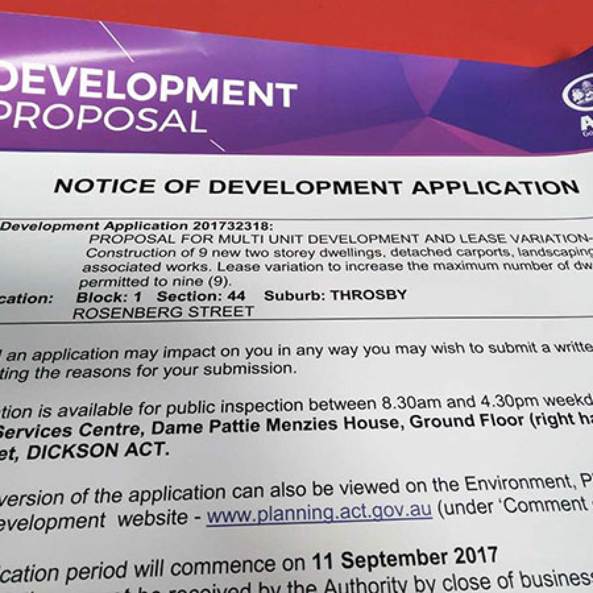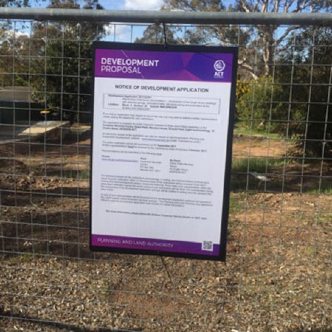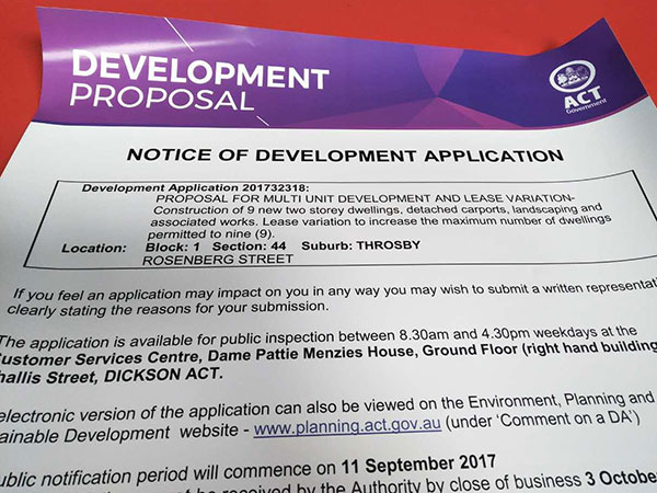ACT Government Notice of Development corflute signs